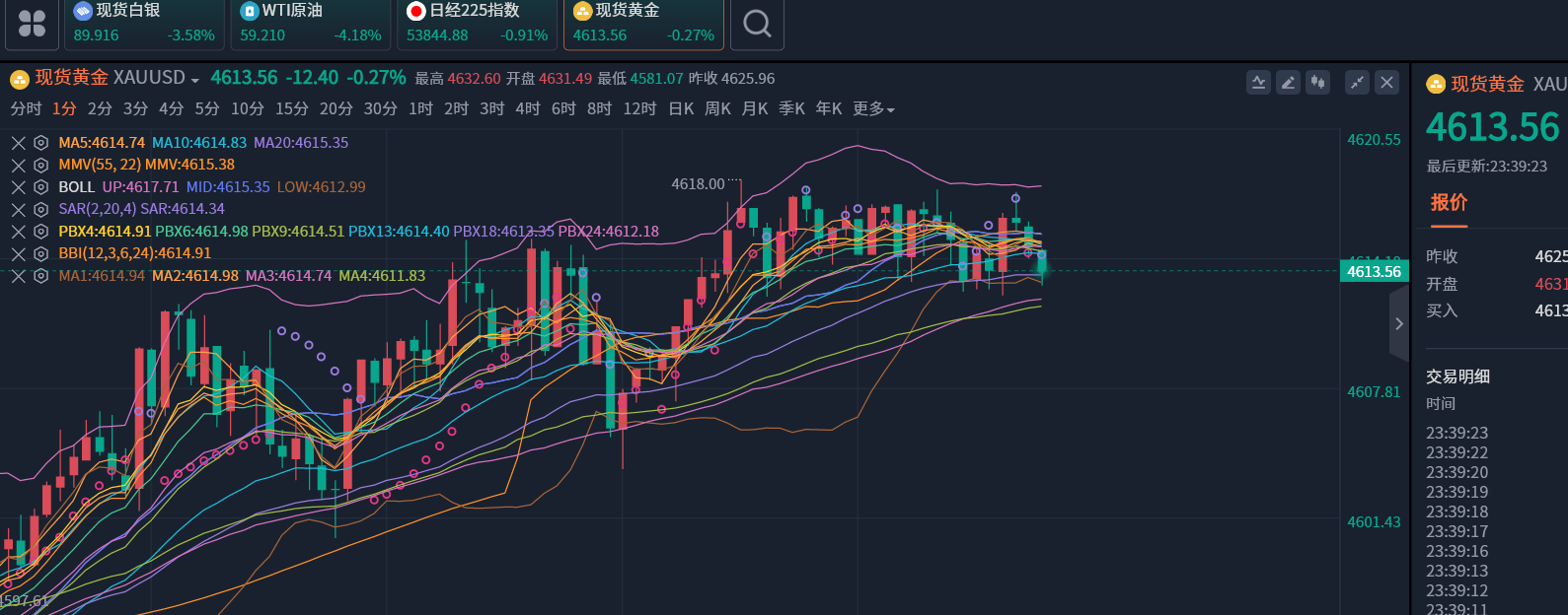 从 1 小时周期的走势来看,黄金目前仍处于大区间震荡状态。下方 4580 一线多次经受考验,均未有效跌破,这充分表明该位置具有极强的承接能力,为黄金价格提供了一定的支撑基础。在震荡行情中,这样的关键支撑位往往对价格的反弹起着至关重要的作用。