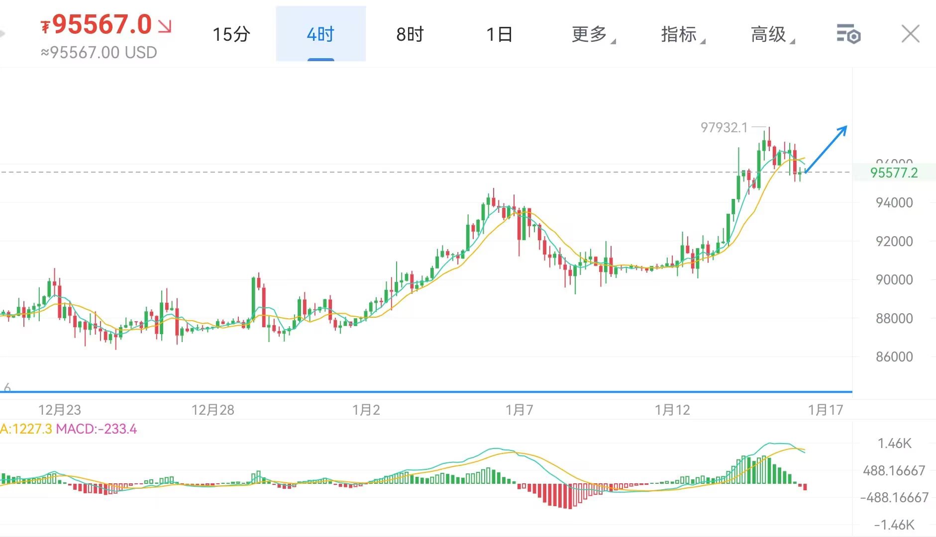 比特币昨日开始高位震荡,看似回落不少,实则是回踩蓄力,上行趋势依旧没有改变,不要被眼前的拉锯形态迷失方向,当前处于上涨中的中继调整,待到调整蓄力完毕,大概率还是会突破98000强压去10w关口。