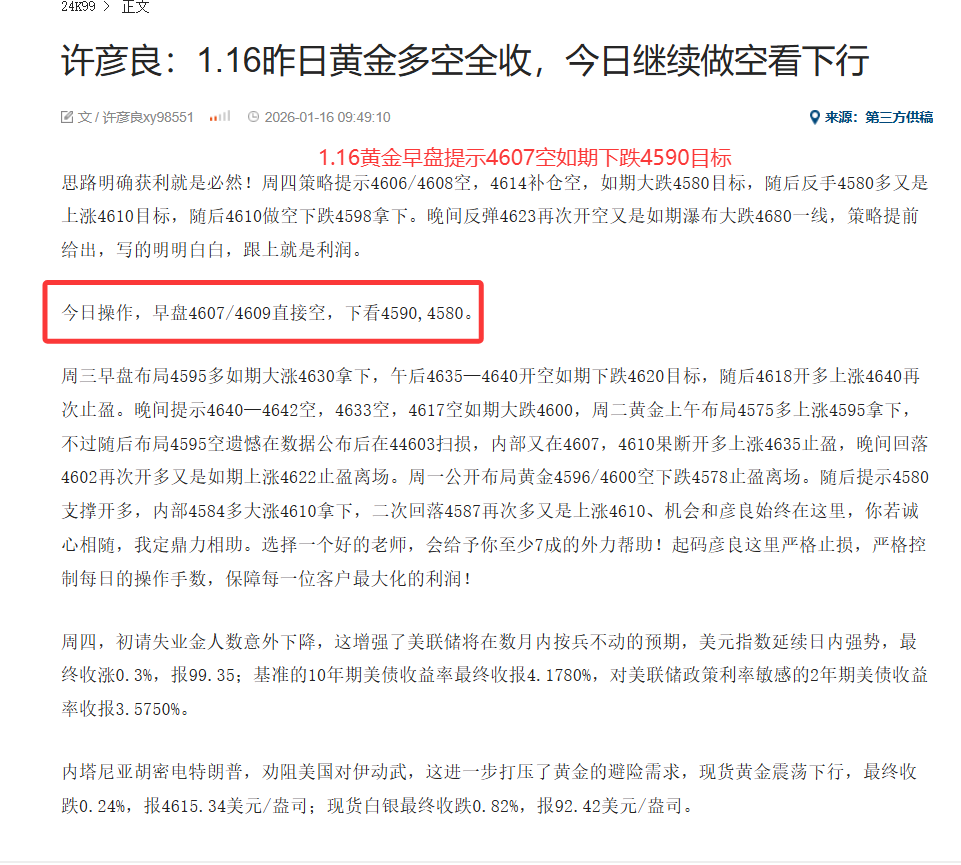 周四策略提示4606/4608空,4614补仓空,如期大跌4580目标,随后反手4580多又是上涨4610目标,随后4610做空下跌4598拿下。晚间反弹4623再次开空又是如期瀑布大跌4680一线,策略提前给出,写的明明白白,跟上就是利润。周三早盘布局4595多如期大涨4630拿下,午后4635—4640开空如期下跌4620目标,随后4618开多上涨4640再次止盈。晚间提示4640—4642空,4633空,4617空如期大跌4600,周二黄金上午布局4575多上涨4595拿下,不过随后布局4595空遗憾在数据公布后在44603扫损,内部又在4607,4610果断开多上涨4635止盈,晚间回落4602再次开多又是如期上涨4622止盈离场。周一公开布局黄金4596/4600空下跌4578止盈离场。随后提示4580支撑开多,内部4584多大涨4610拿下,二次回落4587再次多又是上涨4610、机会和彦良始终在这里,你若诚心相随,我定鼎力相助。选择一个好的老师,会给予你至少7成的外力帮助!起码彦良这里严格止损,严格控制每日的操作手数,保障每一位客户最大化的利润!