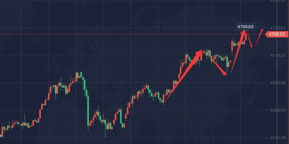 目前,金价跳空高开后高位横盘,周一盘中关键性支撑在4460-40美元的位置,而目前下面支撑处于顶底转换的位置4620-4640的区域之外,跳开高开拉起来然后回踩确认,为后面上升做准备,节奏上并不是极强单边上涨,而是上涨过程中有洗盘动作,往往快速下探为主。