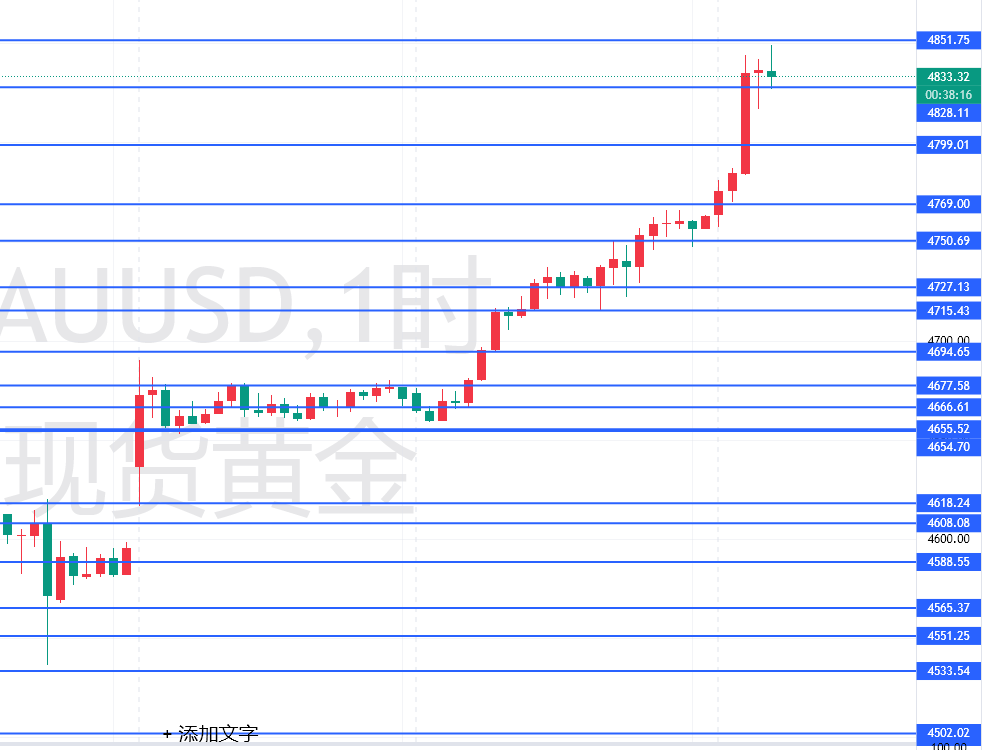 早间黄金强势继续来到了4850位置,而我们早间提示的目标4826,以及后续第一压力均已到达。