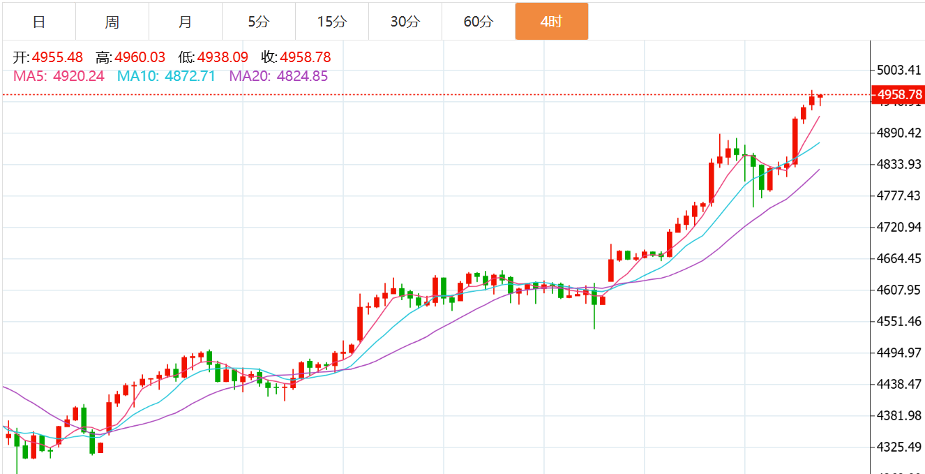 黄金消息面解析:现货黄金价格周四(1月22日)首次突破每盎司4900美元大关,并持续刷新历史新高,直至周五(1月23日)亚市早盘,截止07:57,触及4960.43美元/盎司的高点。这一波涨势不仅带动了白银和铂金等贵金属创下纪录新高,还反映出市场对地缘政治不确定性、美元疲软以及美联储宽松政策的强烈反应。作为一种传统的避险资产,黄金在当前复杂的国际环境中脱颖而出,成为投资者追捧的焦点。