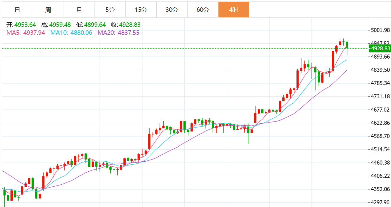 黄金技术面分析:从技术结构来看,黄金价格整体仍处于强势多头趋势之中。日线级别显示,金价沿上升通道持续抬升,价格稳稳运行于中长期均线系统上方,趋势结构保持完好,尚未出现明确的反转信号。在关键价位方面,5000美元区域构成当前的阶段性心理高位阻力,同时也是心理关口所在。若价格能够有效突破并站稳该区域上方,黄金有望进一步打开上行空间,向更高目标延伸。反之,若短线动能出现衰减,金价可能围绕高位展开震荡整理甚至就此出现一次大回调行情。下方支撑方面,4880–4900美元区间构成短线重要支撑带,该区域既是前期突破平台,也是多头防守的关键区域。若出现技术性回调,只要价格维持在该区间上方,整体多头格局仍将保持不变。更下方支撑位关注4800美元附近,该位置对应前期整理区低点,具备较强技术意义,短线无参考入场位置,若操作,建议以中线布局操作。综合来看,今日黄金短线操作思路上贺博生建议回调做多为主,反弹做空为辅,上方短期重点关注4960-4980一线阻力,下方短期重点关注4900-4880一线支撑。