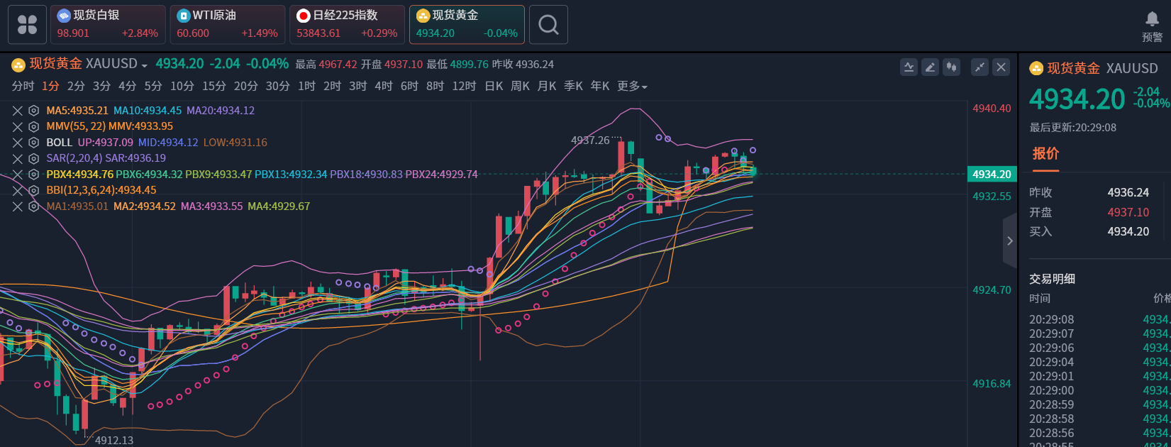 周五(1月23日)亚市早盘,黄金市场的多头狂欢再度升级。国际现货黄金(伦敦金现)一举突破4950美元/盎司历史关口,最高触及4967美元/盎司,技术面上,黄金日线图呈现“连阳”强势格局,均线系统多头排列,5日均线、10日均线形成强力支撑,上升通道完美运行,仿佛所有阻力都不堪一击。但危险信号同样不容忽视,多空博弈已进入白热化,从关键指标看,伦敦金现日线RSI指标虽从接近80的极端超买区间略有回落,但仍维持在70以上,乖离率持续扩大,表明短期上涨动能虽强,但获利回吐压力已累积到临界点。MACD红色动能柱虽未收缩,但快线与慢线距离持续拉大,出现潜在顶背离迹象,暗示多头动能可能透支。小时级别走势呈现分化:短周期均线依旧维持上行态势,盘中回踩力度微弱,每次的回撤都能快速收回,显示短期上涨惯性仍在;但布林带开始缩口,价格在布林带上轨附近震荡,RSI指标从超买区间回落至中性位置,表明短线市场进入方向选择阶段,回调压力已有所释放。当前行情处于“牛市趋势明确但短期风险集聚”的阶段,操作核心原则是“顺势而为不盲从,敬畏高位守底线”,操作上回调做多为主,反弹做空为辅。目前下方支撑日内低点4900附近,不破可以多一下。如果行情跌破4900,下方看顶底转换4888-4833附近,触及可以再多。上方阻力日内高点4967附近,没站稳前,不追多。综合来看,黄金史诗级牛市仍在延续,但4950美元以上的高位区域,风险与收益已严重不对等。今日操作需摒弃“博傻”心态,以回调低吸为核心,以严格风控为保障,在享受牛市红利的同时,守住本金安全的底线——毕竟,在山顶博弈中,“活着”比“赚快钱”更重要。