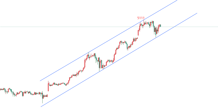 盘面来看,黄金今天5000-4990(国内1122-25)以上依然多头为主,短期赶顶阶段;回落不破支撑先看上涨,上方重点5100至新高区域重点阻力(国内1150区域),然后5150(国内1160区域)和5200(国内1172区域),短期0.618位置5065-60区域关注(早盘强弱分界线)。整体重点关注冲高回落,日内一旦下破4990-5500,一定要引起重视,预示着5111是短期的顶的概率极大。随着价格的走高,洗盘还会加大力度;随随便便的波动一下,就是100-200美元(国内2345块)。