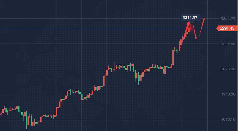 黄金今天白盘再度连涨,做多也不敢久拿,而做空则更加恐惧,而在早盘站稳5200之后黄金开启了连涨模式,当前再度迎来大幅度的上升,现在的行情就是回撤一点就只能继续上车,不然只能出现频频踏空的情况,欧盘可以关注回撤5230附近继续做多,在上涨的激昂情绪没下来之前,跟随做多即可!