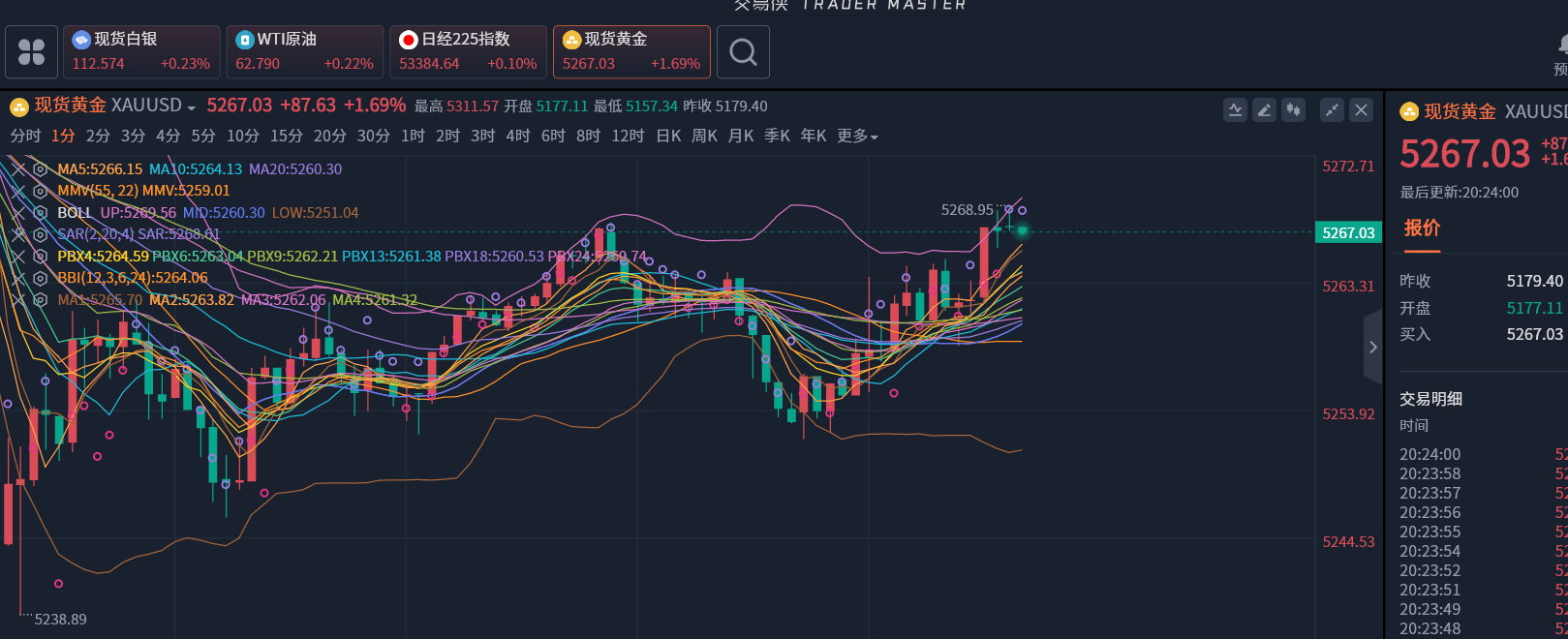 1.特朗普言论影响:昨日尾盘时段,特朗普发言称“不惧美元走软”,该言论直接引发美元崩盘,黄金应声大幅拉升,从5097一线一举大涨至5190一线,成为推动黄金尾盘暴涨、刷新高位的核心*。