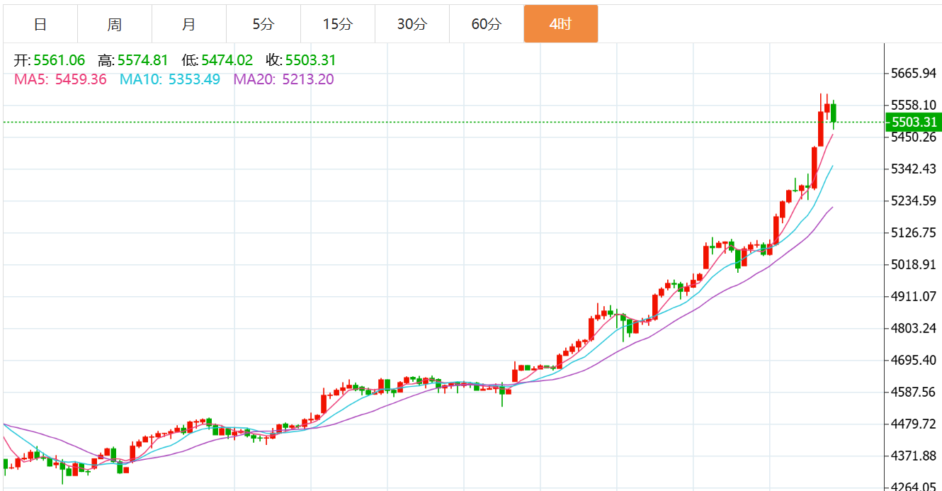 黄金消息面解析:周四(1月29日)亚市早盘,COMEX黄金期货价格首次触及每盎司5600美元大关,刷新历史新高,这不仅仅是数字的跳跃,更是地缘政治紧张与货币政策交织下的产物。特别是在美伊冲突升级的背景下,投资者涌入黄金市场避险,推动金价连续八个交易日上涨,涨幅惊人。美联储维持利率不变的决议虽带来短暂震荡,但未能阻挡避险买盘的汹涌势头。截止07:50,现货黄金最高触及5596.33美元/盎司,COMEX期金最高触及5626.8美元/盎司,均刷新历史记录高点,最高涨幅分别为3.35%和5.37%,由于短线涨幅较大,短线已经出现多头获利了结,目前均回吐部分涨幅,现货黄金目前回落至5500关口附近。