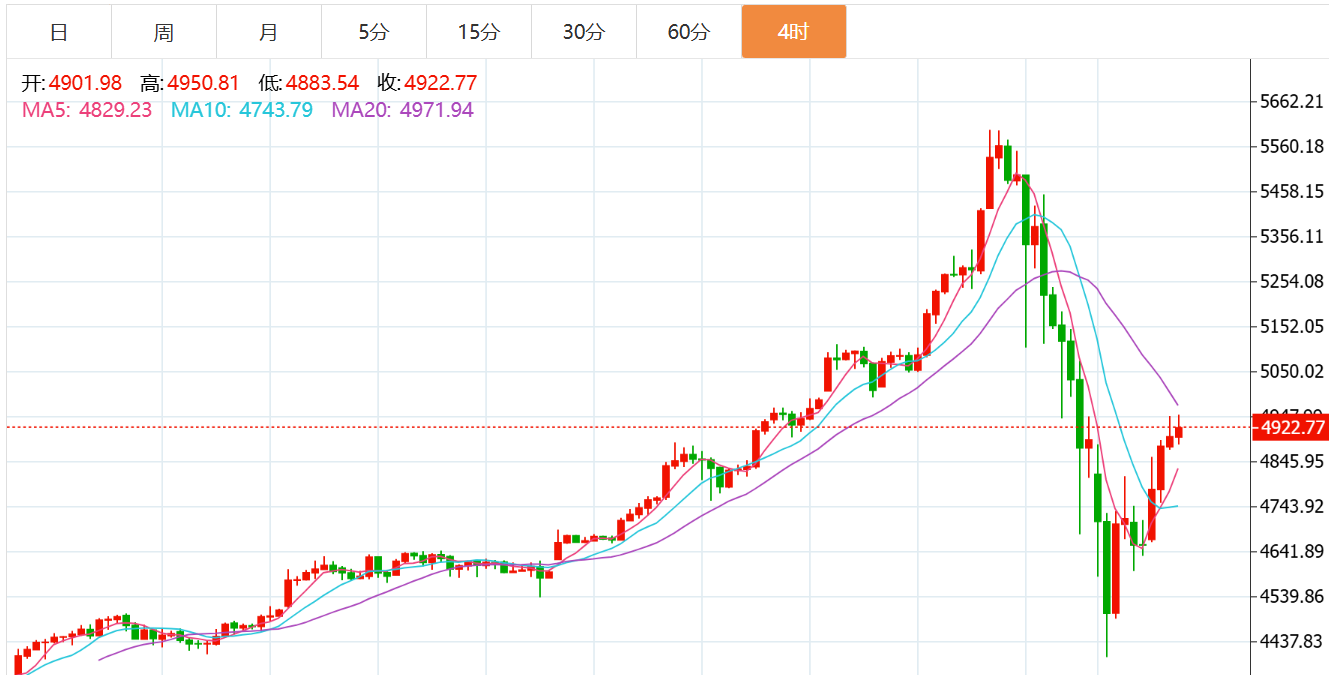 黄金目前在小时级别走势上走出个小的V型反转,短期关注下4880-90一带的压力带,目前K线沿着短周期均线维持在震荡偏强一些的走势,4小时级别走势上在连续的反弹之后开始逐步企稳,下跌走势开始逐步放缓关注下美盘有没有延续反弹的空间。小级别周期走势上目前出现一定程度的背离,在短线走势上可能还有一些调整的空间,但是力度可能不会太大了。综合来看,黄金今日短线操作思路上贺博生建议以回踩低多为主,反弹高空为辅,上方短期重点关注4950-5000一线阻力,下方短期重点关注4850-4800一线支撑。