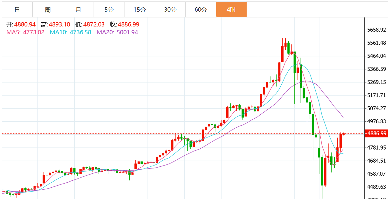 黄金目前在小时级别走势上走出个小的V型反转,短期关注下4880-90一带的压力带,目前K线沿着短周期均线维持在震荡偏强一些的走势,4小时级别走势上在连续的反弹之后开始逐步企稳,下跌走势开始逐步放缓关注下美盘有没有延续反弹的空间。小级别周期走势上目前出现一定程度的背离,在短线走势上可能还有一些调整的空间,但是力度可能不会太大了。综合来看,黄金今日短线操作思路上贺博生建议以回踩低多为主,反弹高空为辅,上方短期重点关注4950-5000一线阻力,下方短期重点关注4830-4780一线支撑。