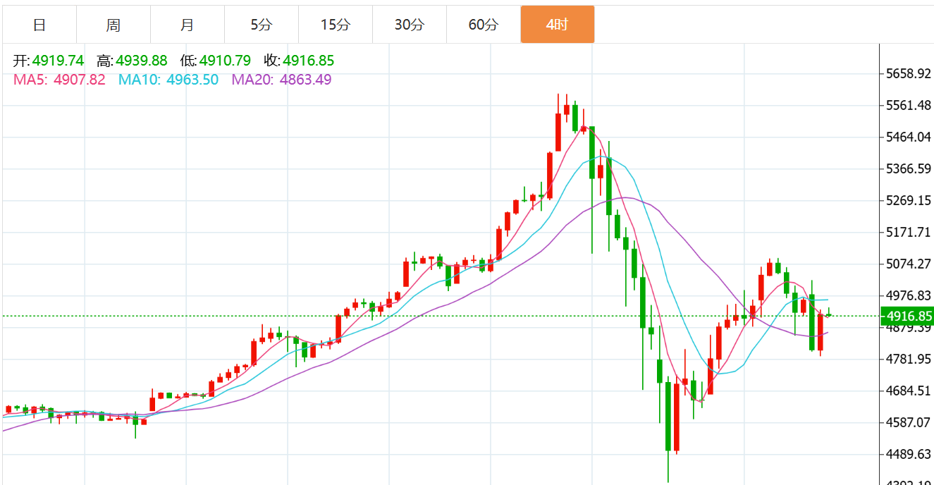 从黄金4小时图看,在创下4430附近的多日低点之后,金价终于迎来了连续性反弹,目前结构上再次形成七连阳,意味着短期的多空争夺再次变得激烈。黄金短暂下跌之后重回5000美元上方,基本面上美伊紧张局势升温支撑避险需求,但美联储人事变动强化鹰派预期,对金价构成*,因此短期波动率并未有效降低之前,维持高位震荡为主,而美元指数的反弹同样限制金价走强。短期操作建议先多再空,下方关注4855-4820支撑,上方关注4950-4995阻力;综合来看,黄金今日短线操作思路上贺博生建议以回踩低多为主,反弹高空为辅,上方短期重点关注4955-5000一线阻力,下方短期重点关注4880-4830一线支撑。
