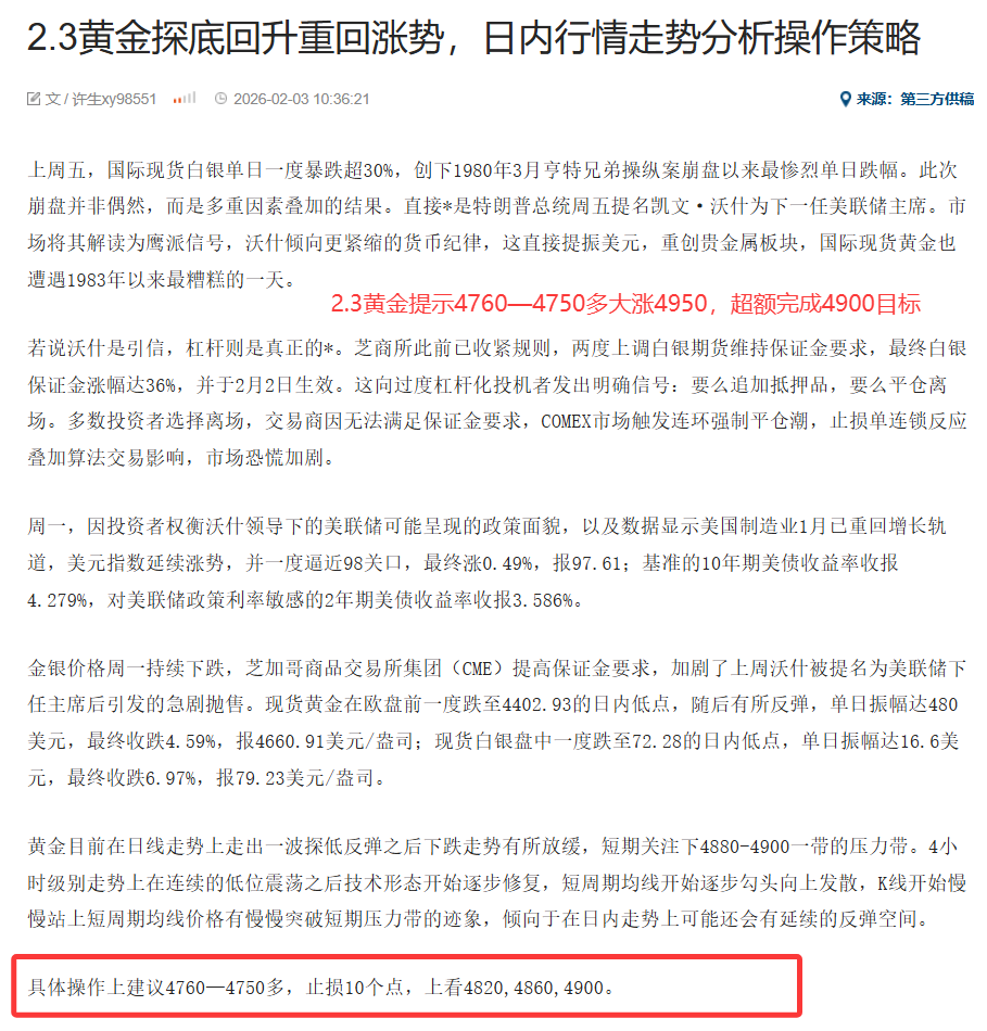 思路明确获利就是必然!黄金日内提示4940—4945区域做空如期大跌4880目标,目前最低下跌4800一线,也是如期刚好给到我的多单进场点位,提前布局,不慌不忙轻松拿下。