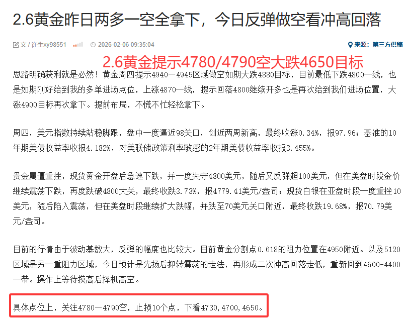 思路明确获利就是必然!早盘提示黄金4780—4790做空如期大跌4650一线,现在企稳反弹,下午需回撤做多看涨。