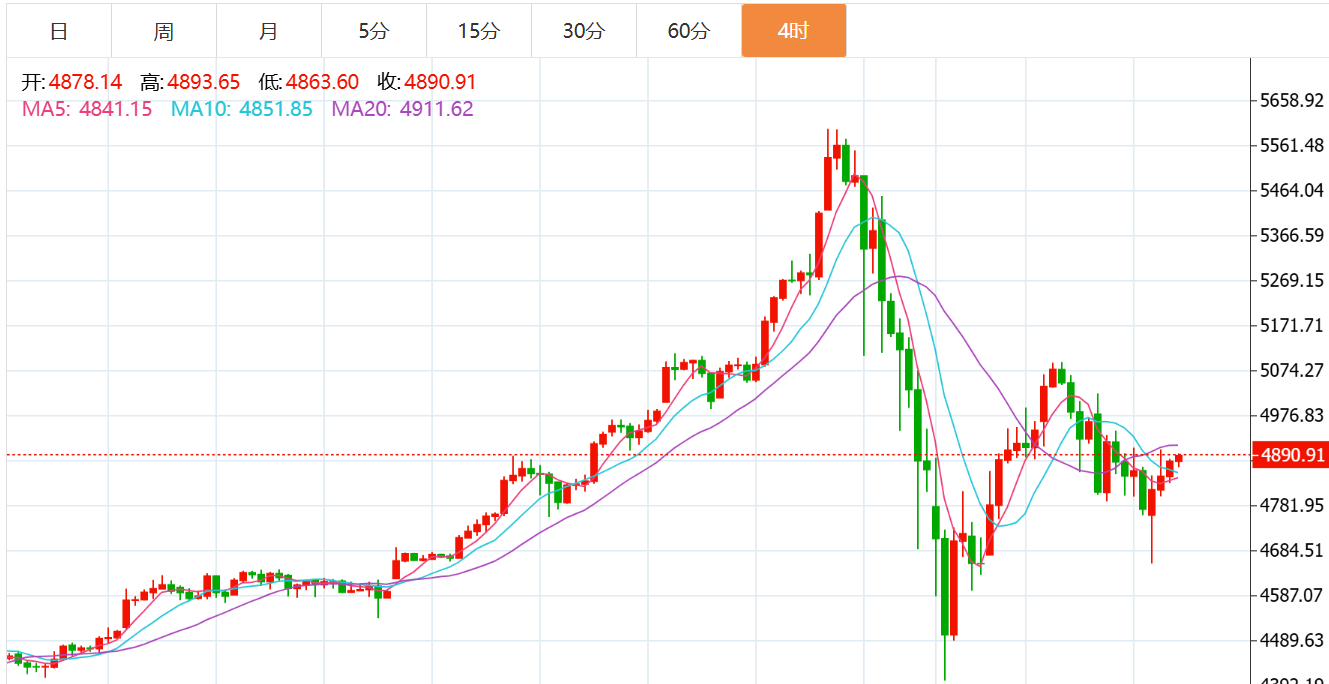 黄金技术面分析:自上周五黄金高台跳水之后,目前黄金维持反复的宽幅震荡走势运行,涨跌幅度和速度保持较快状态,核心点是美联储鹰派预期有所升温,支撑美元走强,对黄金造成一定压力,其二低位买盘情绪依旧浓厚,全球地缘政治关系持续紧张,避险的情绪提供持续性的支撑,加上新年将至,实物需求处于较高水平,多空交织的环境下导致黄金目前走势反复,振幅剧烈,给我们短期交易造成比较大的困扰,技术面上看上个交易日早盘冲击5020附近承压之后一路震荡回落,白盘最低回踩4784附近回升到4945附近,欧美盘二次回踩4796附近再度回升到4900上方,晚间走出破位下行,早盘最低延续到4655附近再度迅速回升,处于一个震荡下行的走势,高低点目前是在下移,主要就是恐高,没有之前那种延续,我们操作上就需要更加耐心等待进场位置,在波动较快的时候尽量多等一等,然后果断下手,快速出入,不贪心在市场适当把握一些机会。黄金现在的5000附近是一个大调整的中轴位置,这个位置下面都是浪结构的调整区,反之重新站上5000就可能再次刷新高,今天的白盘我们先看看4680-4700附近的小支撑带来的反弹,反弹的第一*看看4900-5000。综合来看,黄金今日短线操作思路上贺博生建议以回踩低多为主,反弹高空为辅,上方短期重点关注4950-5000一线阻力,下方短期重点关注4830-4780一线支撑。