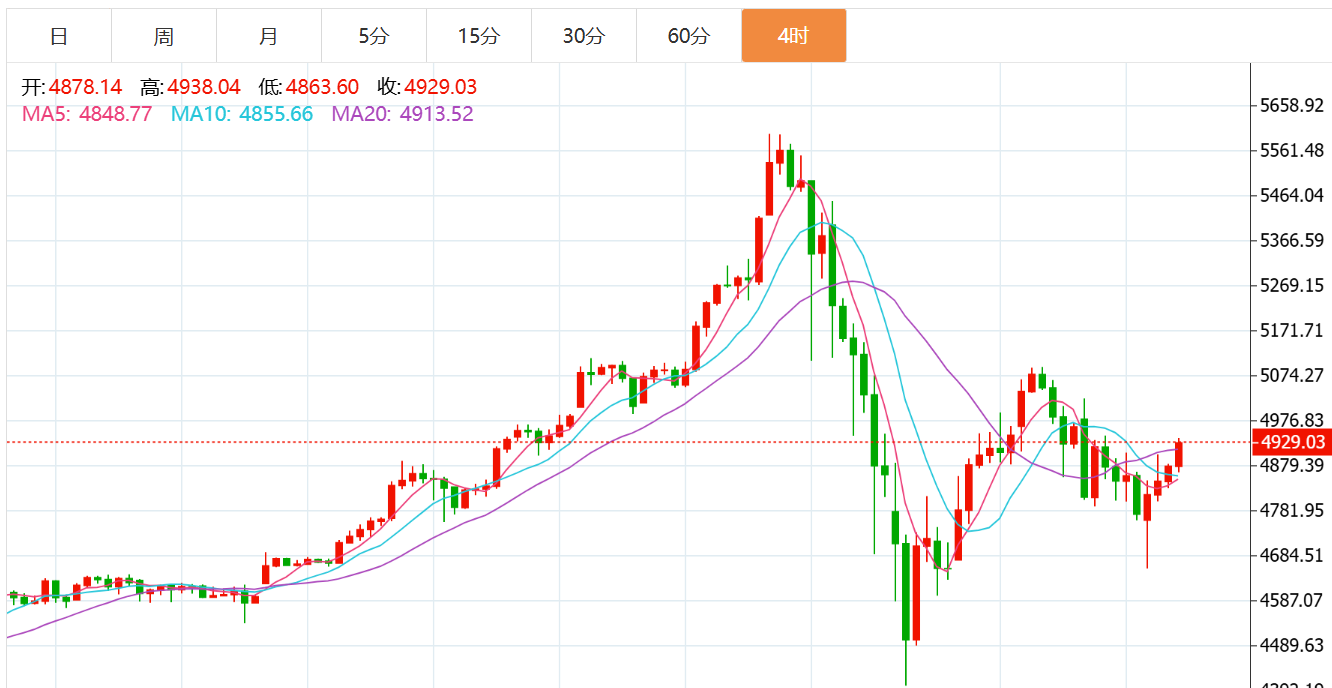 黄金技术面分析:自上周五黄金高台跳水之后,目前黄金维持反复的宽幅震荡走势运行,涨跌幅度和速度保持较快状态,核心点是美联储鹰派预期有所升温,支撑美元走强,对黄金造成一定压力,其二低位买盘情绪依旧浓厚,全球地缘政治关系持续紧张,避险的情绪提供持续性的支撑,加上新年将至,实物需求处于较高水平,多空交织的环境下导致黄金目前走势反复,振幅剧烈,给我们短期交易造成比较大的困扰,技术面上看上个交易日早盘冲击5020附近承压之后一路震荡回落,白盘最低回踩4784附近回升到4945附近,欧美盘二次回踩4796附近再度回升到4900上方,晚间走出破位下行,早盘最低延续到4655附近再度迅速回升,处于一个震荡下行的走势,高低点目前是在下移,主要就是恐高,没有之前那种延续,我们操作上就需要更加耐心等待进场位置,在波动较快的时候尽量多等一等,然后果断下手,快速出入,不贪心在市场适当把握一些机会。黄金现在的5000附近是一个大调整的中轴位置,这个位置下面都是浪结构的调整区,反之重新站上5000就可能再次刷新高,今天的白盘我们先看看4680-4700附近的小支撑带来的反弹,反弹的第一*看看4900-5000。综合来看,黄金下周短线操作思路上贺博生建议以回踩低多为主,反弹高空为辅,上方短期重点关注4980-5030一线阻力,下方短期重点关注4880-4830一线支撑。