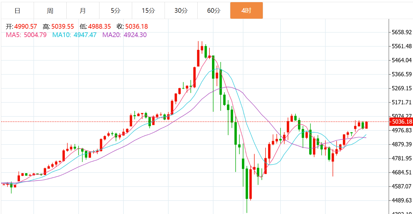黄金技术面分析:早盘黄金高开,最高在5045附近,进一步的扩大了上周4700布局的多单利润,跟上周提示的在4400支撑布局多单一样,本周也需要关注5100是否破位,上周讲过,5100之下,黄金会是弱势震荡,有来回往返的可能性,但一旦站稳5100.黄金的多头趋势开启,上涨就相待轻松,可以继续看5350.5600.从技术面来看,日线的上涨趋势比较明显,在第二波初级4650后黄金大涨,日线收阳,破位布林中轨,那么接下来,日线在本周连阳后会破位5100.那么,再看日线上轨目标5350.至于是否能破位5600则需要看本周众多数据的刺激。虽然坚决看涨,但也不能掉以轻心,因为暂时黄金没有破位5100.也没有形成H4布林上轨的开口,所以周初也没有形成绝对的强势,也就是说存在随时回落的可能。小周期的周初下方关注4935附近,可以考虑回落后继续做多。周内的重点行情从周三开始关注数据刺激。综合来看,黄金今日短线操作思路上贺博生建议以回踩低多为主,反弹高空为辅,上方短期重点关注5050-5100一线阻力,下方短期重点关注4980-4930一线支撑。