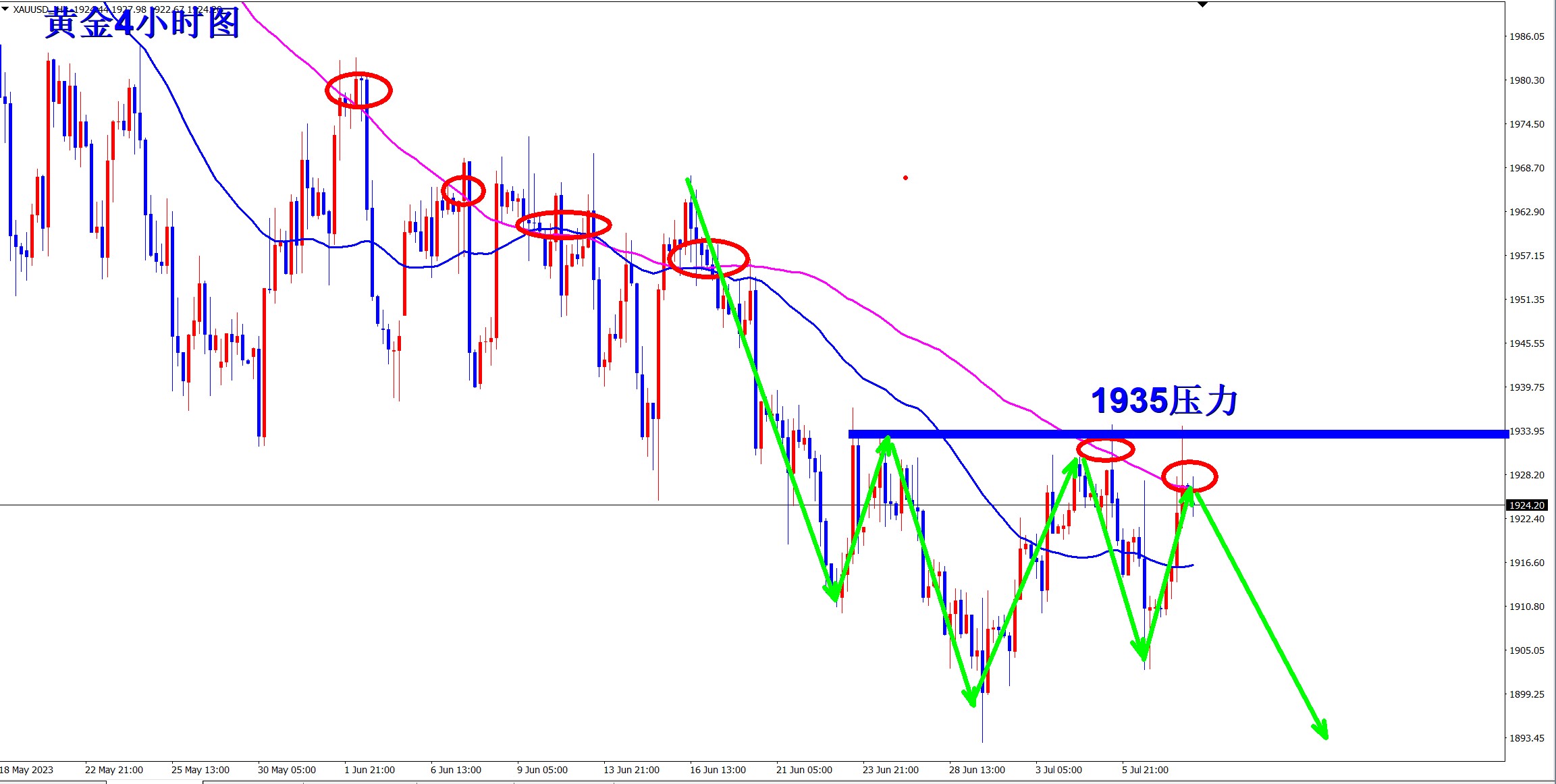 黄金1935空,止损1942,目标1920-1900;