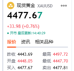 黄金本周表现强势,周一暴涨2.4%至4449美元/盎司,周二亚市早盘进一步刷新历史高点至4461美元。今年以来金价累计上涨约69%,有望创1979年以来最大年度涨幅。
