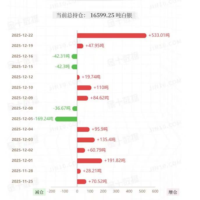 白银ETF(iShares Silver Trust)单日增持超533吨,创近两年最大增幅。铂金、钯金也同步创下多年新高,显示贵金属板块进入全面强势阶段。白银的强劲表现吸引部分资金回流黄金,形成板块内轮动支撑。