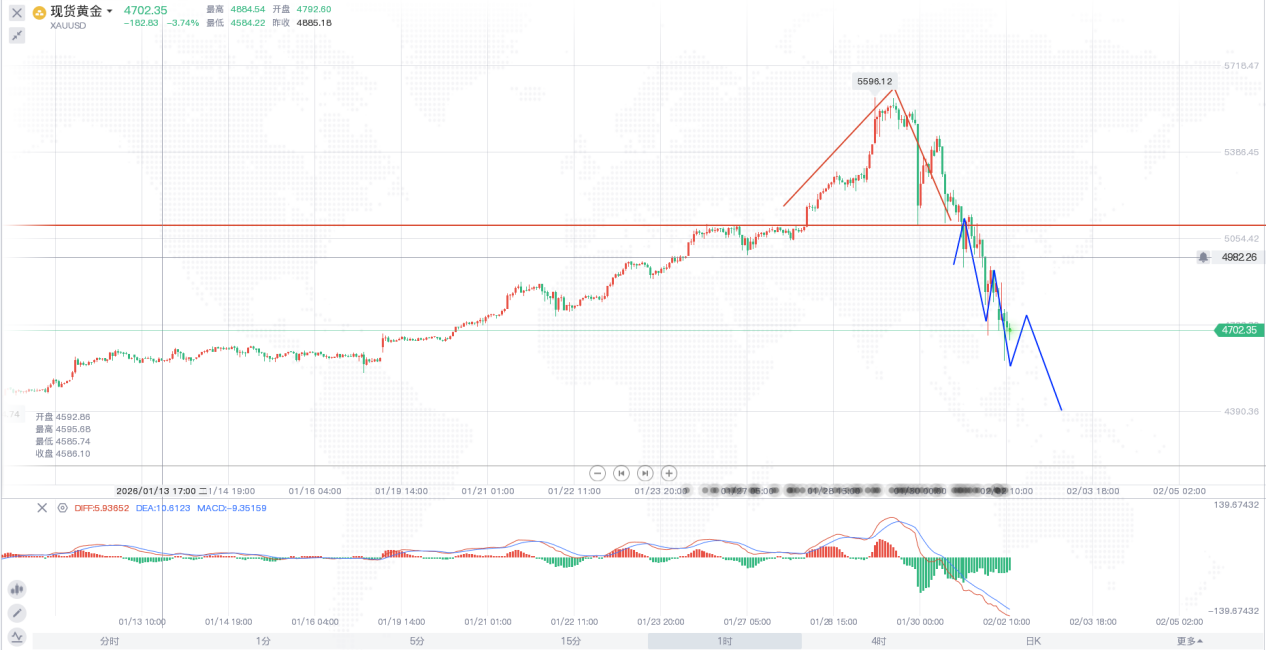 因为比特币已经下跌10%,黄金量能还没结束。我能看到的关键支撑4660,今天也被刷新了,这个位置其实真的很关键,4660企稳会去5000