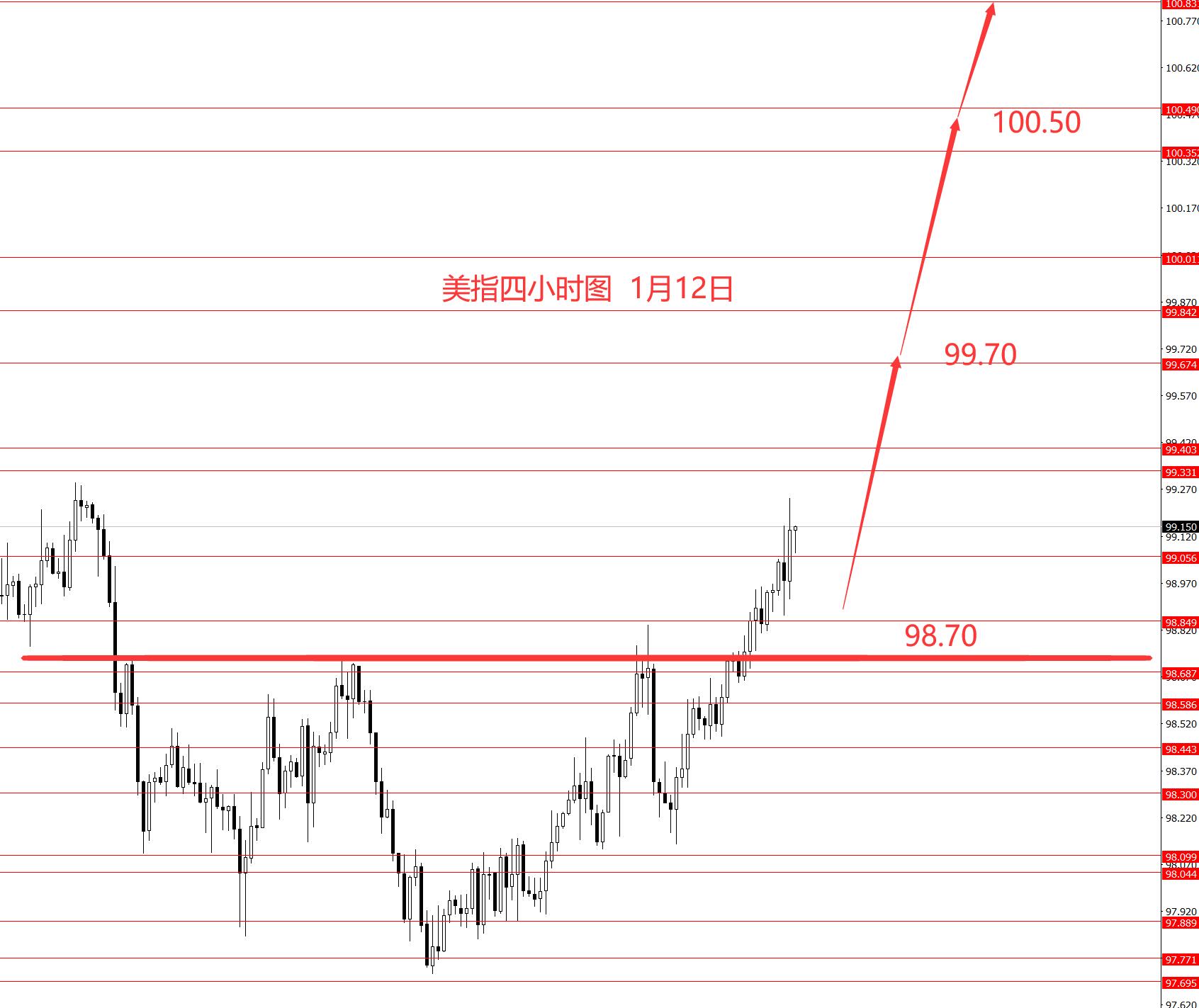 美指上周正如预期向上运行周图收阳柱。从图形来看,美指中线看涨思路不变,本周继续做多美元指数。关注下方98.70强支撑,以上继续看涨,本周操作建议:98.90附近做多,止损98.60,目标看向99.70和100.50和102.40附近。前两周有做多的,可上移止损至建仓价继续持有。控制仓量,严格止损。