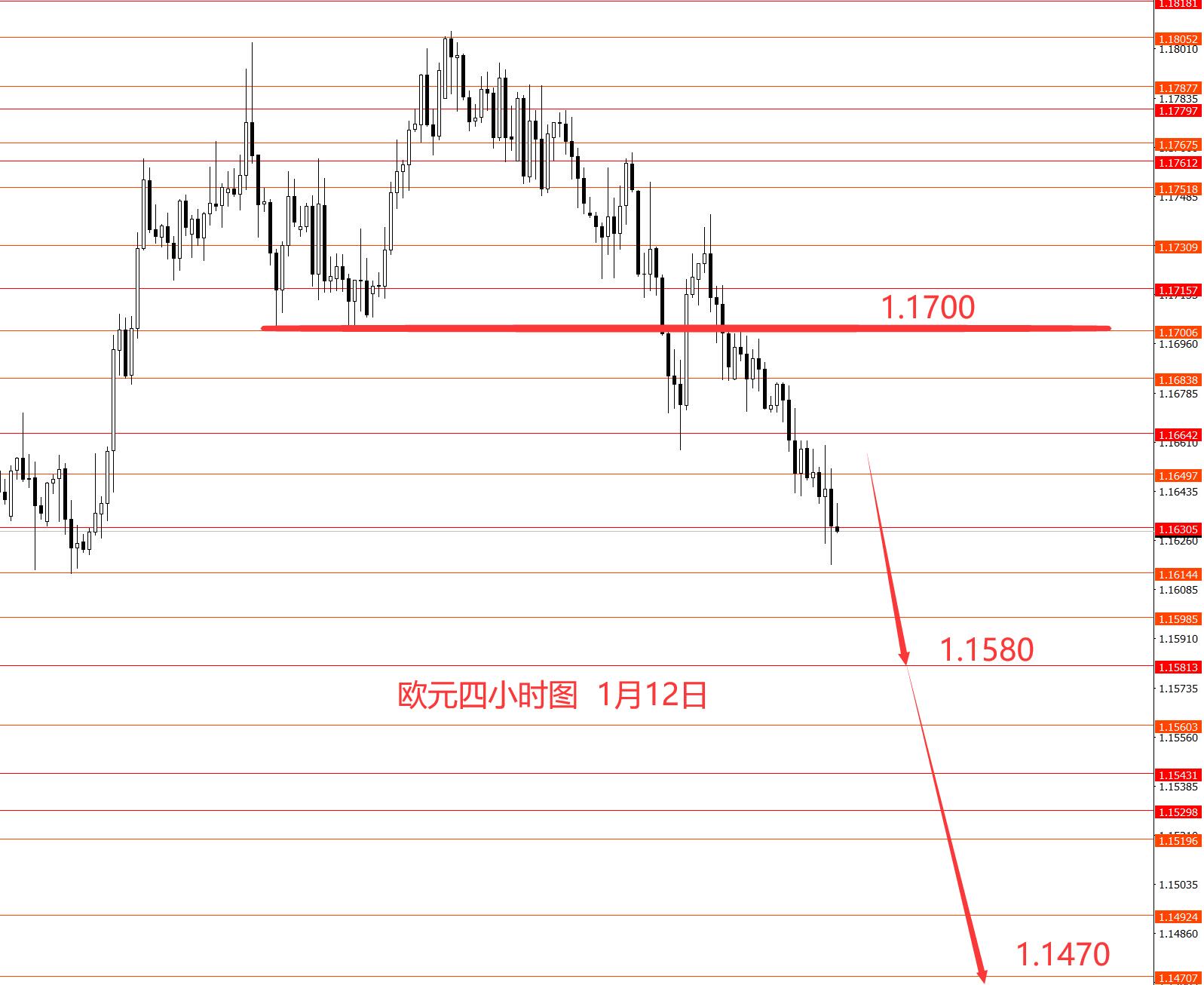 欧元正如预期向下运行,第一目标1.1630也已到位。从图形来看,欧元延用上周观点,继续中看线看至1.1310附近。本周重点关注上方1.1700强阻力,以下继续看空,操作建议:1.1650附近做空,止损1.1690,目标看向1.1580和1.1420和1.1310区域。当然欧元也有不反弹直接下行的可能,前期有空单的下移止损至1.1700可继续中线持有。控制仓量,严格止损。