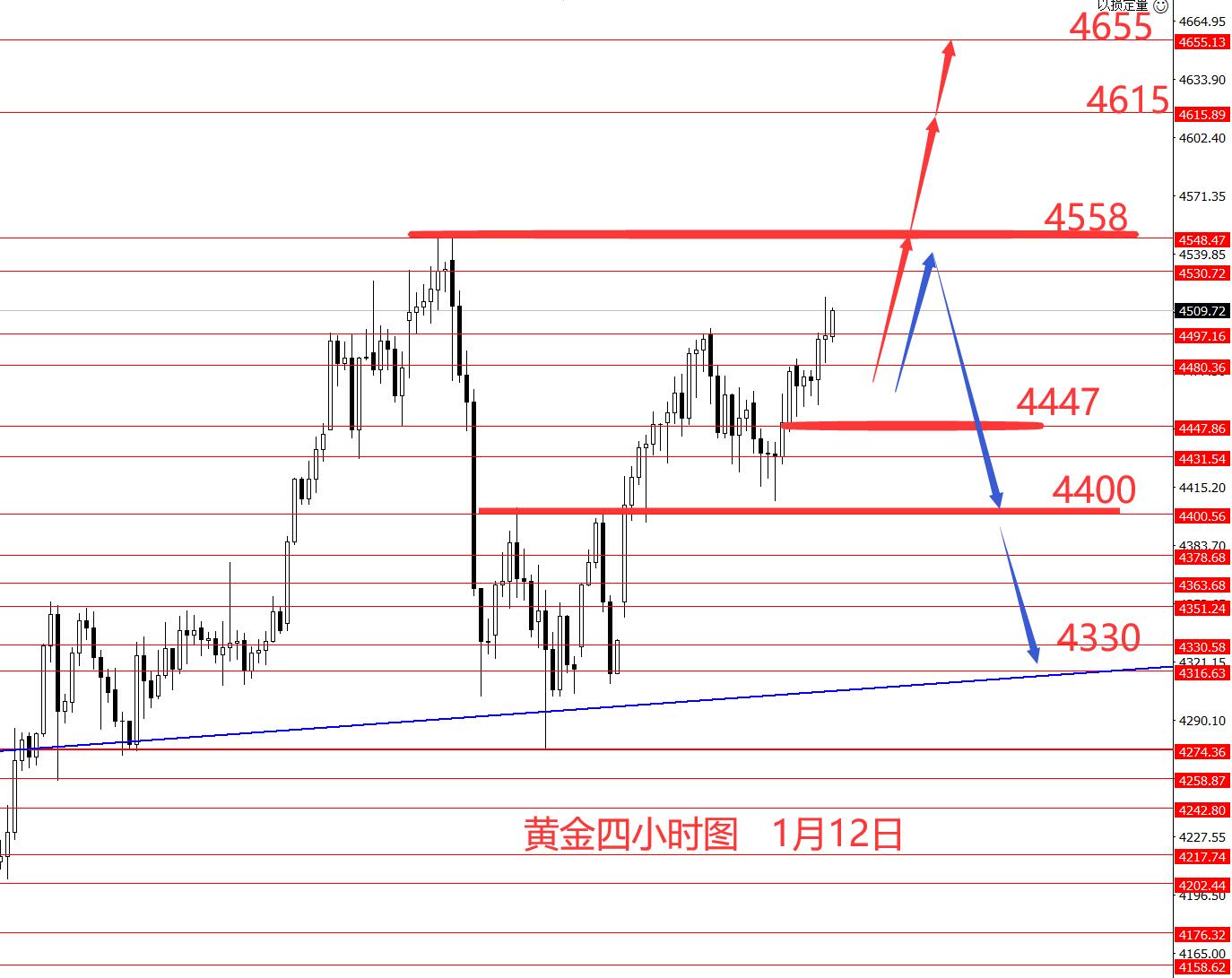 黄金上周向上测试4497区域强阻力后,虽承压回落,但4400强支撑也没破,周五非农数据上破4497强阻力。从图形来看,黄金仍在高位区间震荡,整体偏强势。本周两套方案,方案一:关注4447强支撑,以上偏向于看涨,目标新高4615和4655,再看向4688和4721;方案二,关注前期高点4530和4578区域强阻力,关注是否在此区域承压向下回落,若顶部形态好看,再向下看向4447和4400,等于还是高位震荡格局,只有4400成功跌破,才能迎来短期的向下回调行情,下方再关注4363和4350和4316.目前方案一的概率相对较大点。框架思路仅供参考,风险自负。