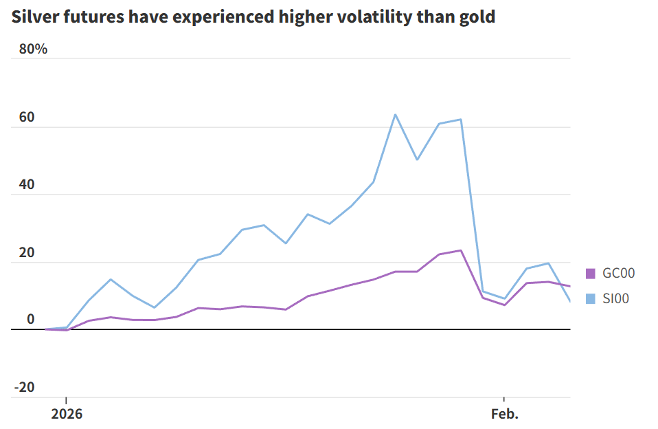 Libertas Wealth Management Group总裁兼高级财务顾问Adam Koos表示,白银的剧烈波动“更多是持仓与波动率所致,而不是现货金属市场突然发生了什么重大变化”。