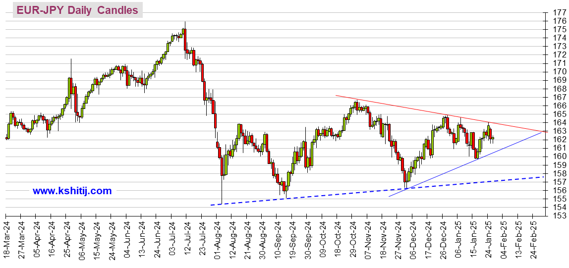 欧元/日元在164-160区间内继续波动。需要朝区间任何一端实现决定性的突破,以进一步明确方向。