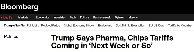 特朗普还曾威胁对制药行业实施严厉关税,以迫使制造回流美国。特朗普最近要求主要药品供应商大幅削减成本,否则将面临额外的、未指明的处罚。
