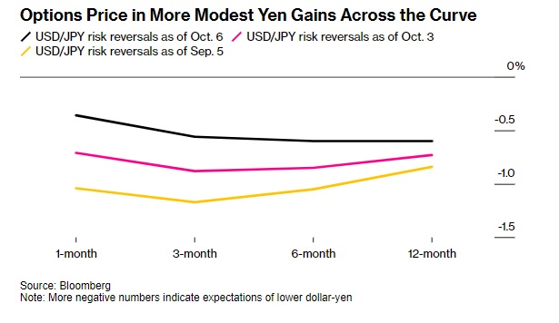尽管风险逆转因素全面反映出日元升值速度放缓,但基本情况仍然是未来一个月、几个季度和一年日元将走强。