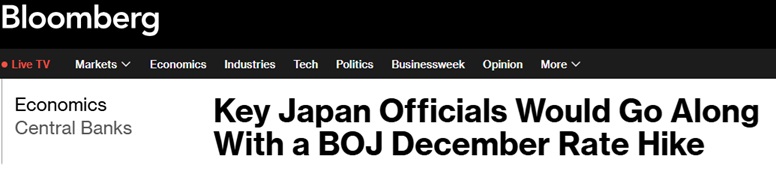 相关表态出现在外界对日本央行将于12月19日下一次政策会议结束时把基准利率上调至0.75%的猜测升温之际。