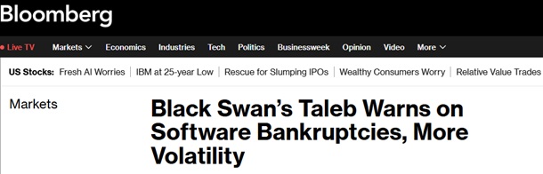 FX168财经报社(亚太)讯 《黑天鹅》(The Black Swan)一书作者纳西姆·塔勒布(Nassim Taleb)对投资者发出警告:随着由人工智能(AI)驱动的市场反弹进入一个更加脆弱的阶段,准备迎接波动加剧和软件行业的潜在破产。