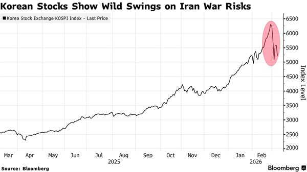 在持续的战争背景下,油价飙升一直是投资者关注的主要问题,因为这可能推动通胀上升。原油价格突破100美元/桶,加剧了对韩国——一个能源净进口国——成本上涨的担忧。