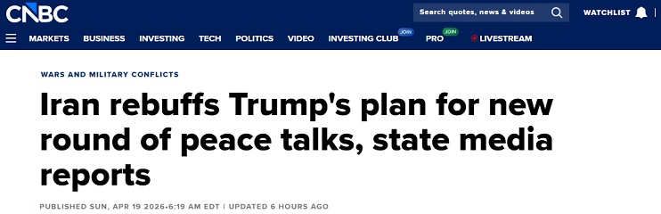 FX168财经报社(亚太)讯 美国消费者新闻与商业频道(CNBC)当地时间周日(4月19日)报道称,伊朗国家通讯社周日报道称,伊朗否认将参与与美国的新一轮和平谈判。此前数小时,美国总统特朗普(Donald Trump)表示,伊朗谈判代表将于周一前往巴基斯坦,与伊朗举行第二轮和平谈判。