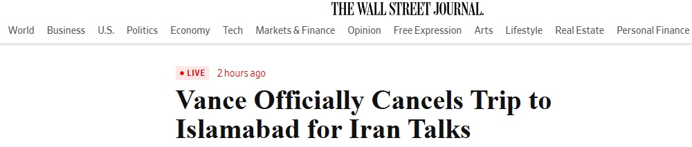 FX168财经报社(亚太)讯 美国《华尔街日报》当地时间周二(4月21日)晚间最新报道称,据一位白宫官员称,美国副总统万斯(J.D. Vance)已无限期取消其前往巴基斯坦伊斯兰堡的行程,理由是特朗普总统宣布延长停火协议,并呼吁伊朗方面提出统一方案。